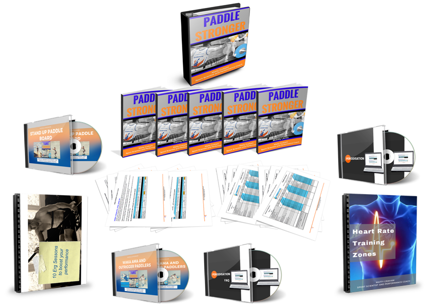 Paddle Stronger is a combinations of Ebooks, training plans and periodsation templates that will guide you through the process of choosing the right plans to do at the right time and making adjustments to your periodsation to suit your needs.